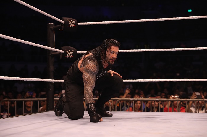 Much to Zayn’s disappointment, the athlete who answered the call was none other than multiple-time world champion Roman Reigns, who secured the 1-2-3 by hammering Zayn with the Superman Punch and then hitting a thunderous spear.